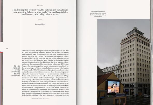 The sun is shining, the alpine peaks are glittering in the sun, the sky hints at the nearby Slovenian Riviera. It is so small, according to a Slovenian joke, that you have to carry your passport in your mouth if you go for a swim. The innumerable open-air coffee houses and bars are full to the last seat and radiate a Mediterranean warmth. I meet the Slovenian Maja Vardjan at the weekly market so that she can show me her Ljubljana. She is an architect, journalist and the manager of her own design gallery, the T5 Project Space. »The nicest thing about my city is that you only need to drive for an hour to get to Trieste for an Italian cappuccino«, she laughs. With just under 280,000 inhabitants, Ljubljana is small, and in the cultural scene everyone knows everyone else. »You have to go away often, for example to Vienna, to see international exhibitions. Here, sadly, no museum can afford them, if only because of high insurance costs. We are really a ›capital village‹.« We go to the Moderna Galerija (Museum of Modern Art), which celebrated its 60th birthday in 2008 but has been being remodelled for quite a while. In addition to Slovenian Modern art it also houses the Arteast 2000+ Collection, an excellent collection of contemporary art from Central and Eastern Europe from the ’50s to today, which has been collected by curator Zdenka Badovinac. The collection, which focuses mainly on conceptual art, has already been shown several times internationally. The museum also has an external branch, the Mala Galerija (Little Gallery), for more innovative exhibition projects and young artists. In the legendary Galerija Škuc we meet the artistic director Alenka Gregorič. At the unusually early age of 26, she took over as director of the gallery in 2003, replacing Gregor Podnar, an important figure in the Ljubljana art world, who had startet to find it too quiet. Now Podnar runs a commercial gallery with Slovenian and Scandinavian artists in Berlin and is active in Ljubljana only sporadically.